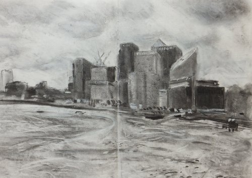 Financial regulator and regulated banks cluster together in Canary Wharf, the latter dominating the scene. This drawing I made from Trinity Buoy Wharf earlier this month. With the Thames in front and an ominous sky, I feel there is a sense of unconscious indictment in my drawing.