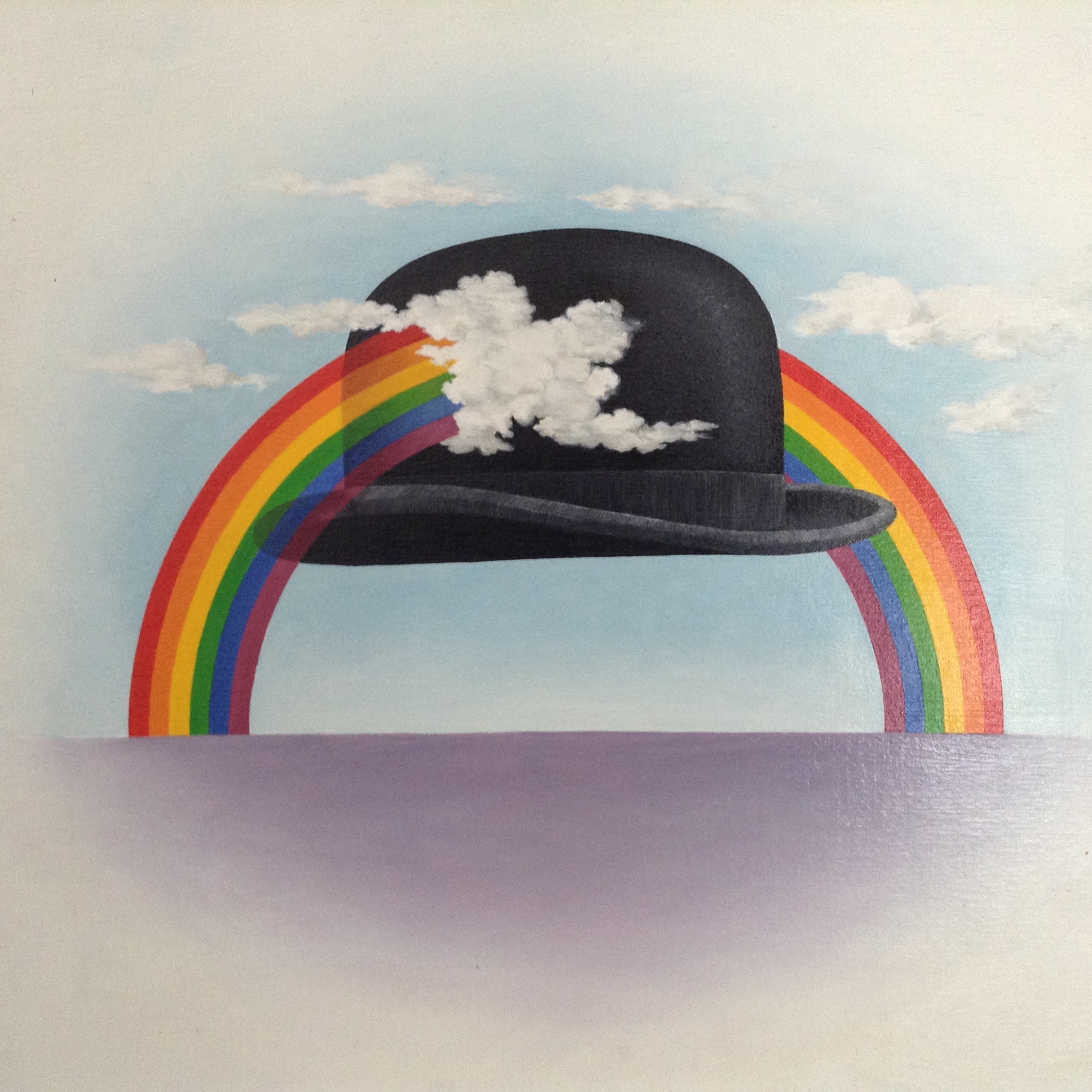 The image knowingly drew on two sources, both of which were readily acknowledged: one was Rene Magritte’s famous bowler hat paintings and the other a poster for the School of Visual Arts by Milton Glaser. Milton, who died just recently, was a great afficionado when it came to rainbows, and this post records the passing of a great designer who influenced me and many others through his ideas and wonderfully varied use of drawing and visual material.
