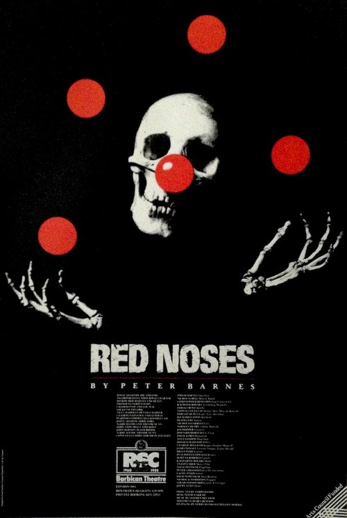 The 25th anniversary of Red Nose Day and Damian Hirst’s celebratory red-nosed skull reminded me of a poster we designed at Lloyd Northover in 1985. The poster was produced for the Royal Shakespeare Company’s premier of Peter Barnes’ play ‘Red Noses’ at the Barbican in London.
